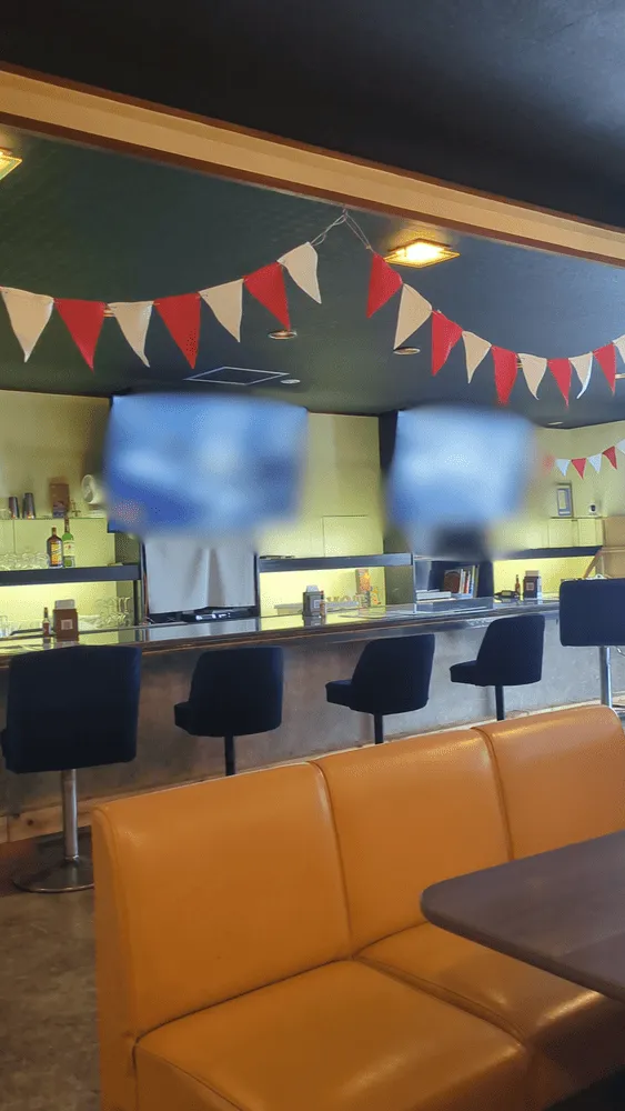 4人がけテーブル席が3つとカウンター席が数席あります。