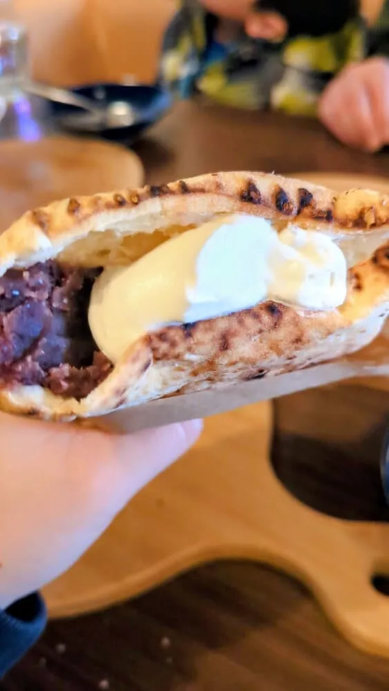 具材は日替わりで提供。この日はあんこ&ホイップのスイーツ系パニーニでした。